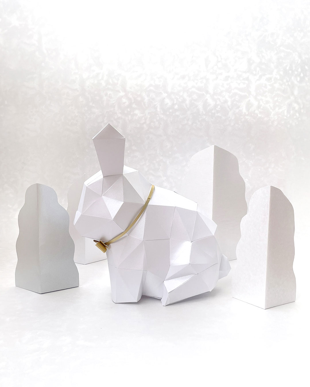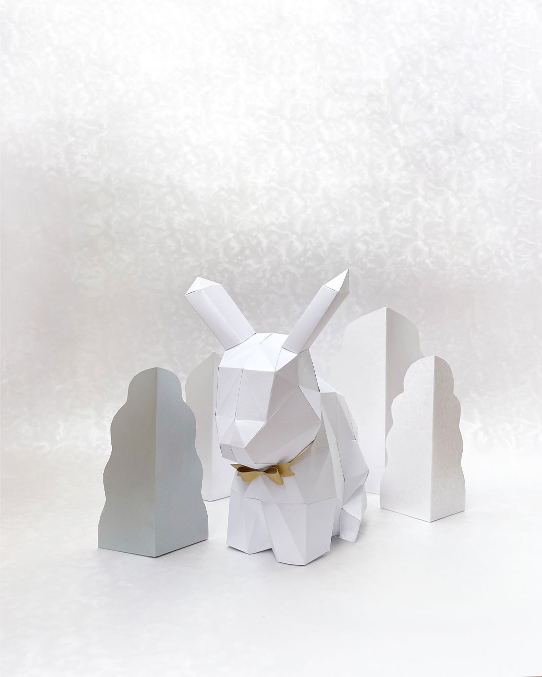 Este tierno conejo 3D de papel es un proyecto para armar que combina diseño y sensibilidad en una figura encantadora. Con sus formas suaves y orejas expresivas, es perfecto para decorar espacios infantiles, dar un toque natural a una repisa o simplemente disfrutar de una experiencia creativa con tus propias manos.
