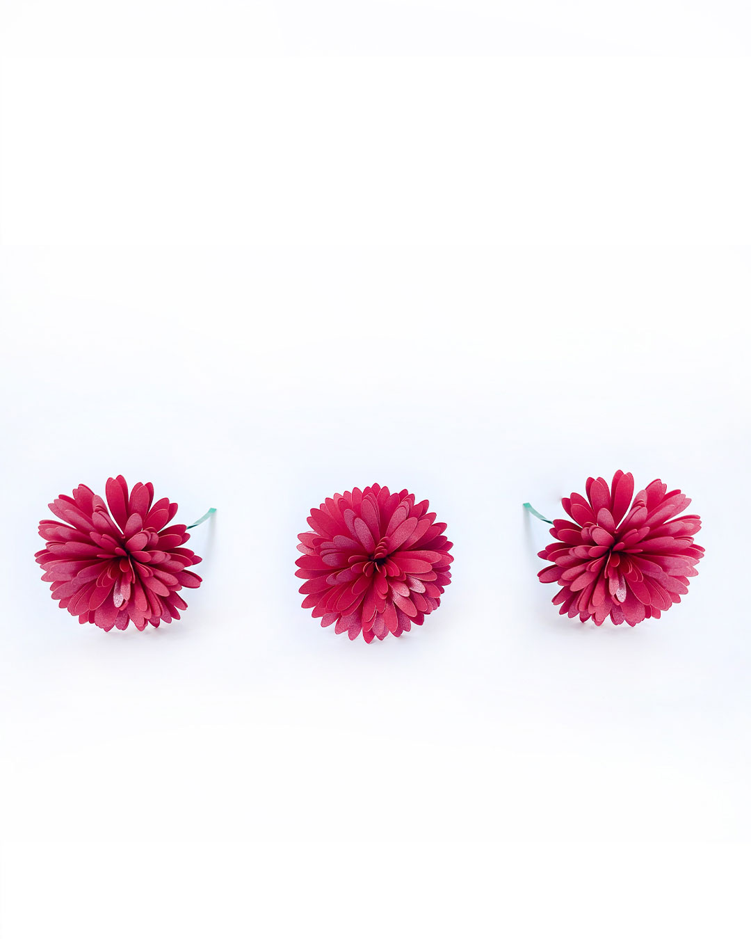 Este kit trae todo lo que necesitas para crear tres crisantemos en papel, perfectos para darle un aire sereno y delicado a tus espacios.