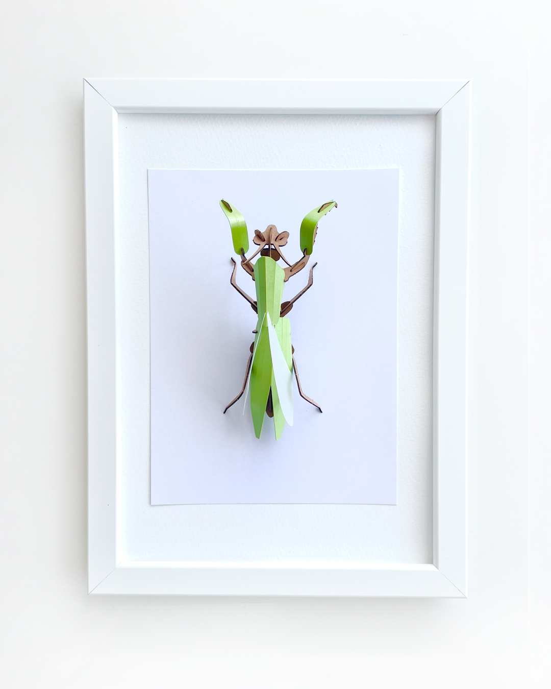 Arma paso a paso una mantis de cartón que parece cobrar vida.