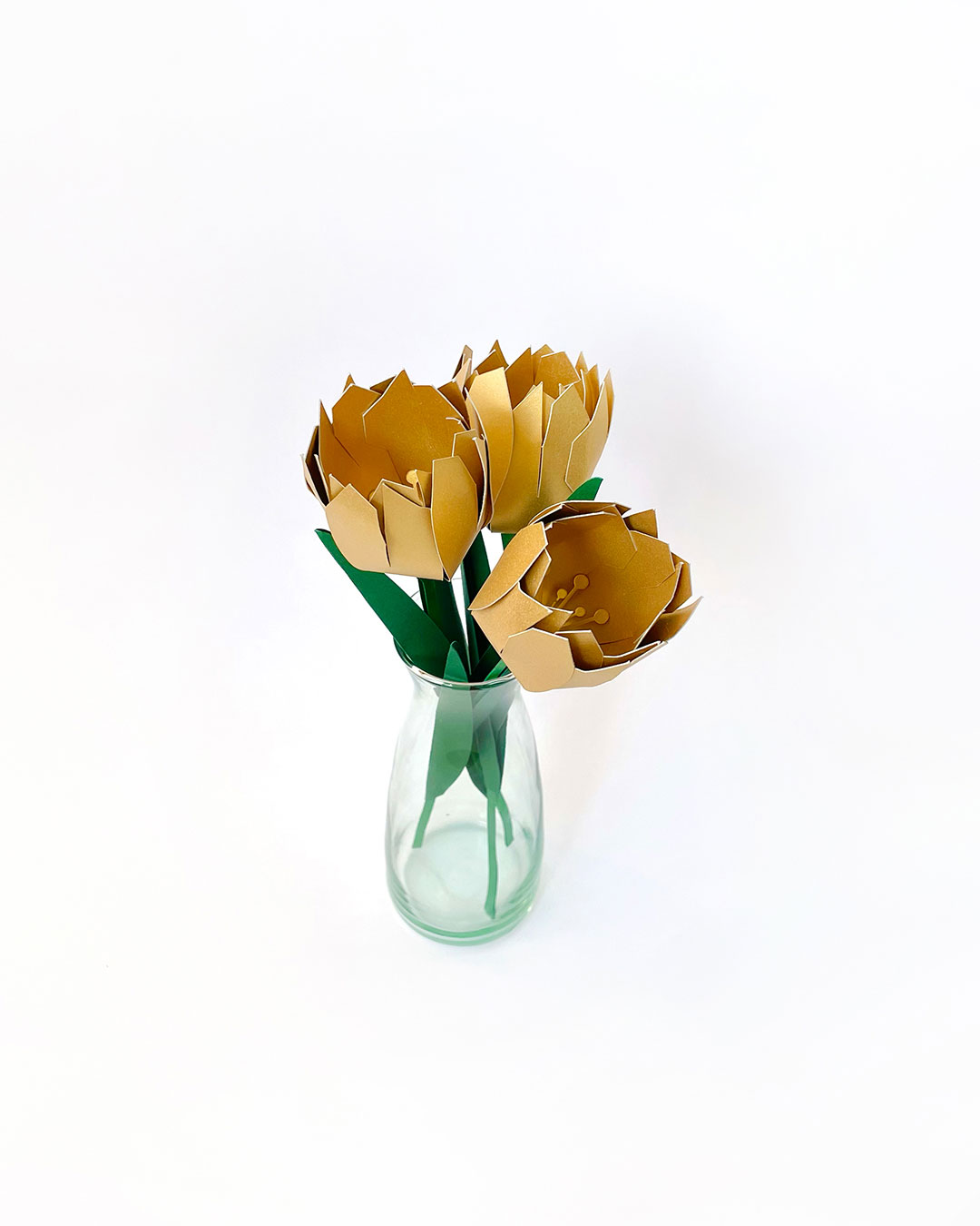 Este kit trae todo lo que necesitas para crear tres tulipanes en papel, ideales para llenar tus espacios de color y frescura atemporal.
