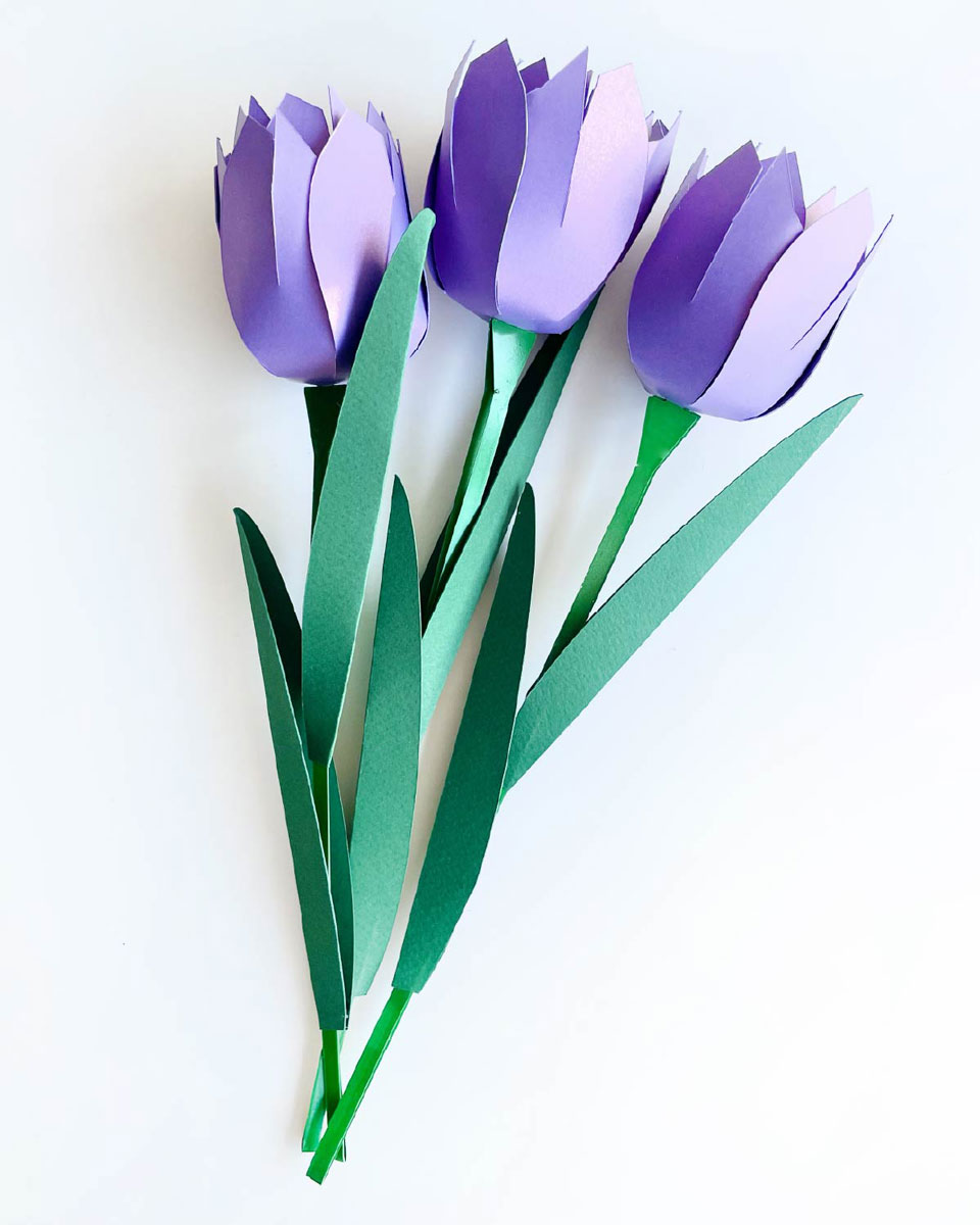 Este kit trae todo lo que necesitas para crear tres tulipanes en papel, ideales para llenar tus espacios de color y frescura atemporal.
