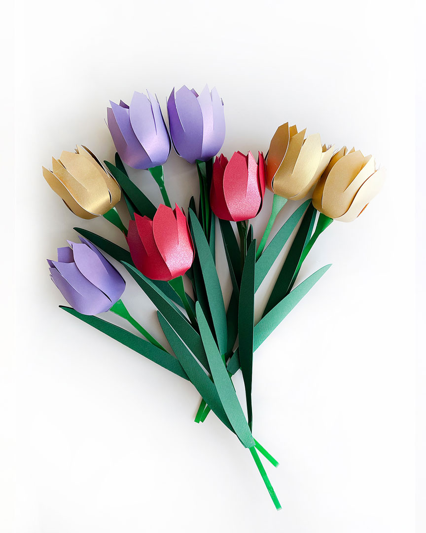 Este kit trae todo lo que necesitas para crear tres tulipanes en papel, ideales para llenar tus espacios de color y frescura atemporal.